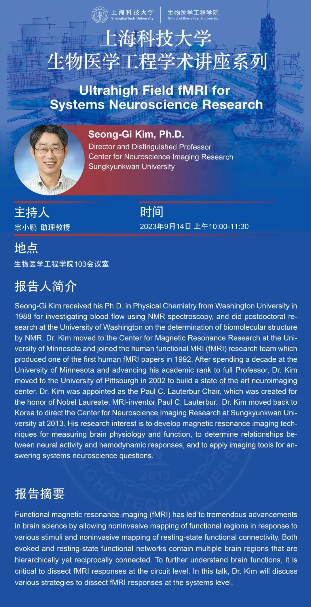 地点:上海科技大学生物医学工程学院103会议室 (线下)